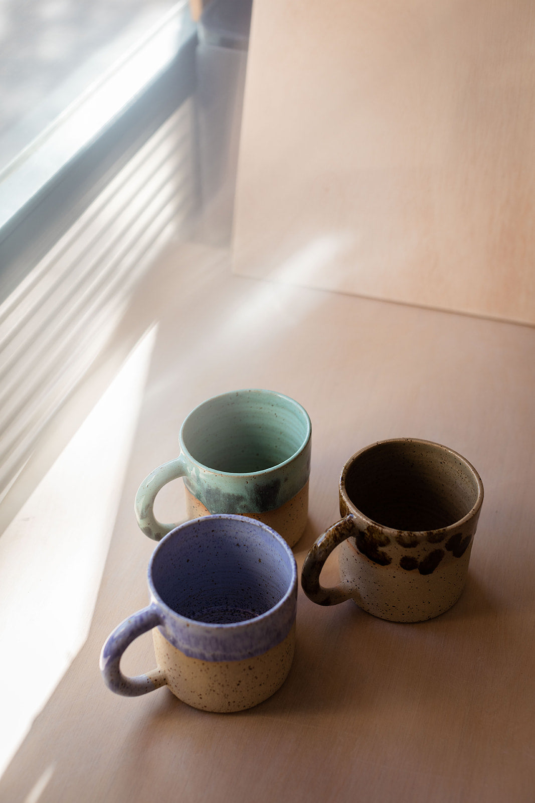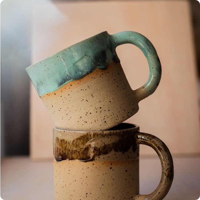Les tasses desfetes estan fetes al torn amb gres xamotat i motejat d'alta temperatura. Aquest material ens ofereix màxima qualitat i resistència tant als cops com al xoc tèrmic. Per tant, és apte per microones i rentaplats.