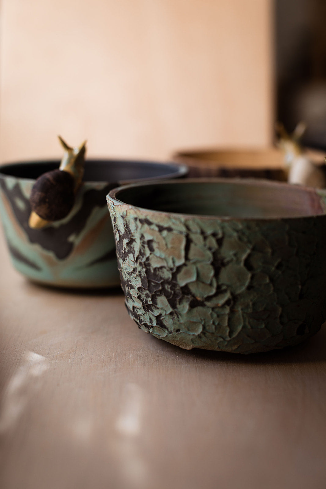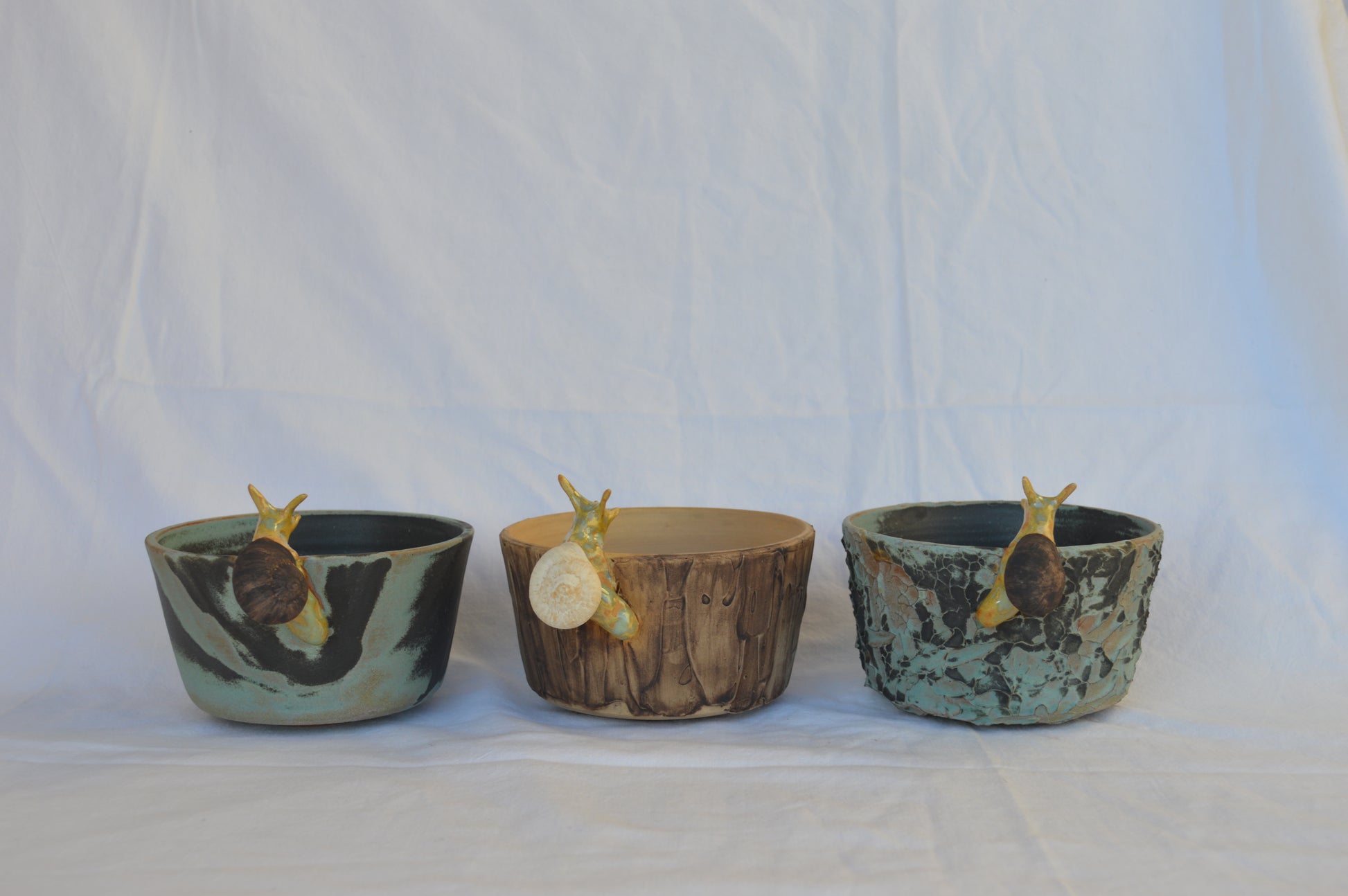 Els testos amb cargol estan fets utilitzant diverses tècniques: Torn pel cos de la peça, motlle per la closca i modelat pel cos del cargol.